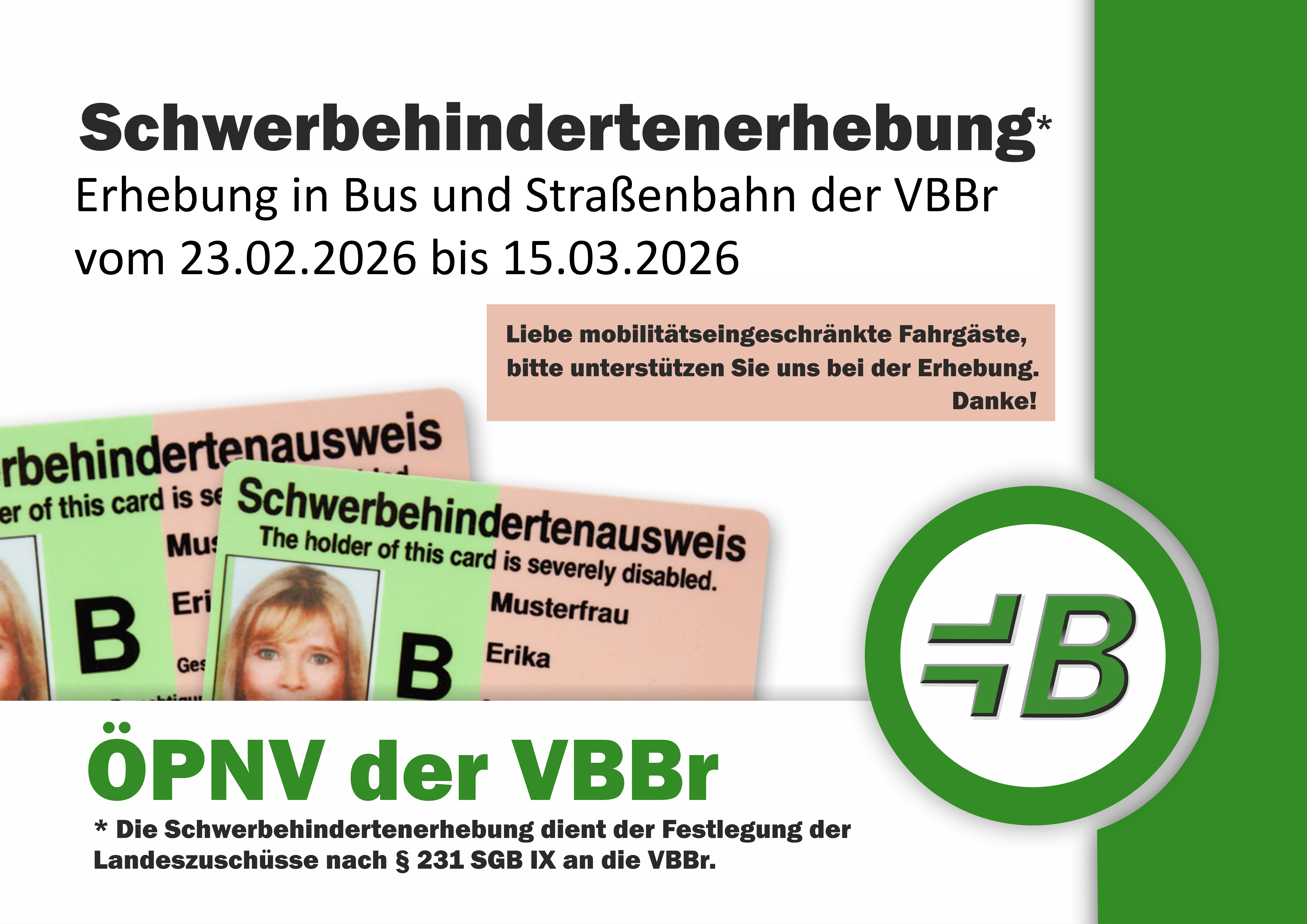 Im Zeitraum vom 23.02. bis 15.03.2026 werden Fahrgäste in Bussen und Bahnen der Verkehrsbetriebe Brandenburg an der Havel GmbH gebeten, ihren Fahrschein vorzuzeigen.